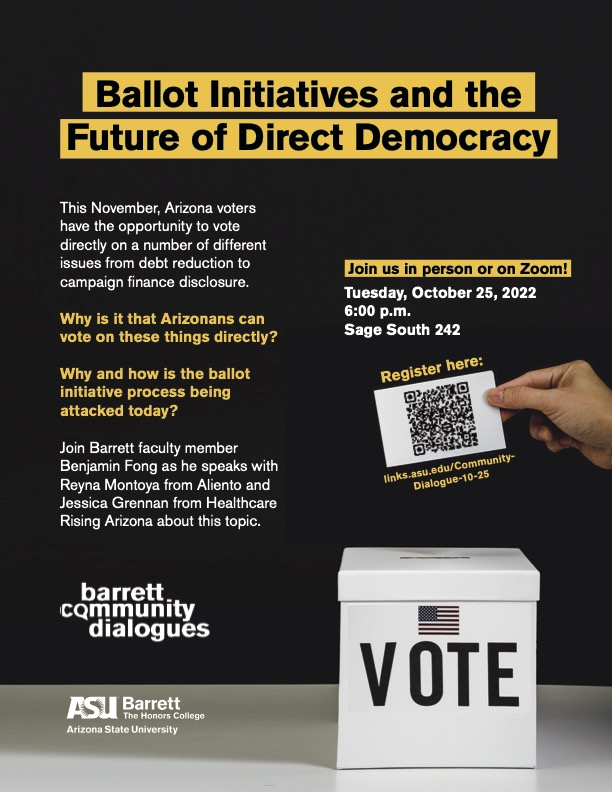 Join Barrett faculty member Benjamin Fong as he speaks with Reyna Montoya from Aliento and Kaylan Fodor from Healthcare Rising Arizona about this topic.